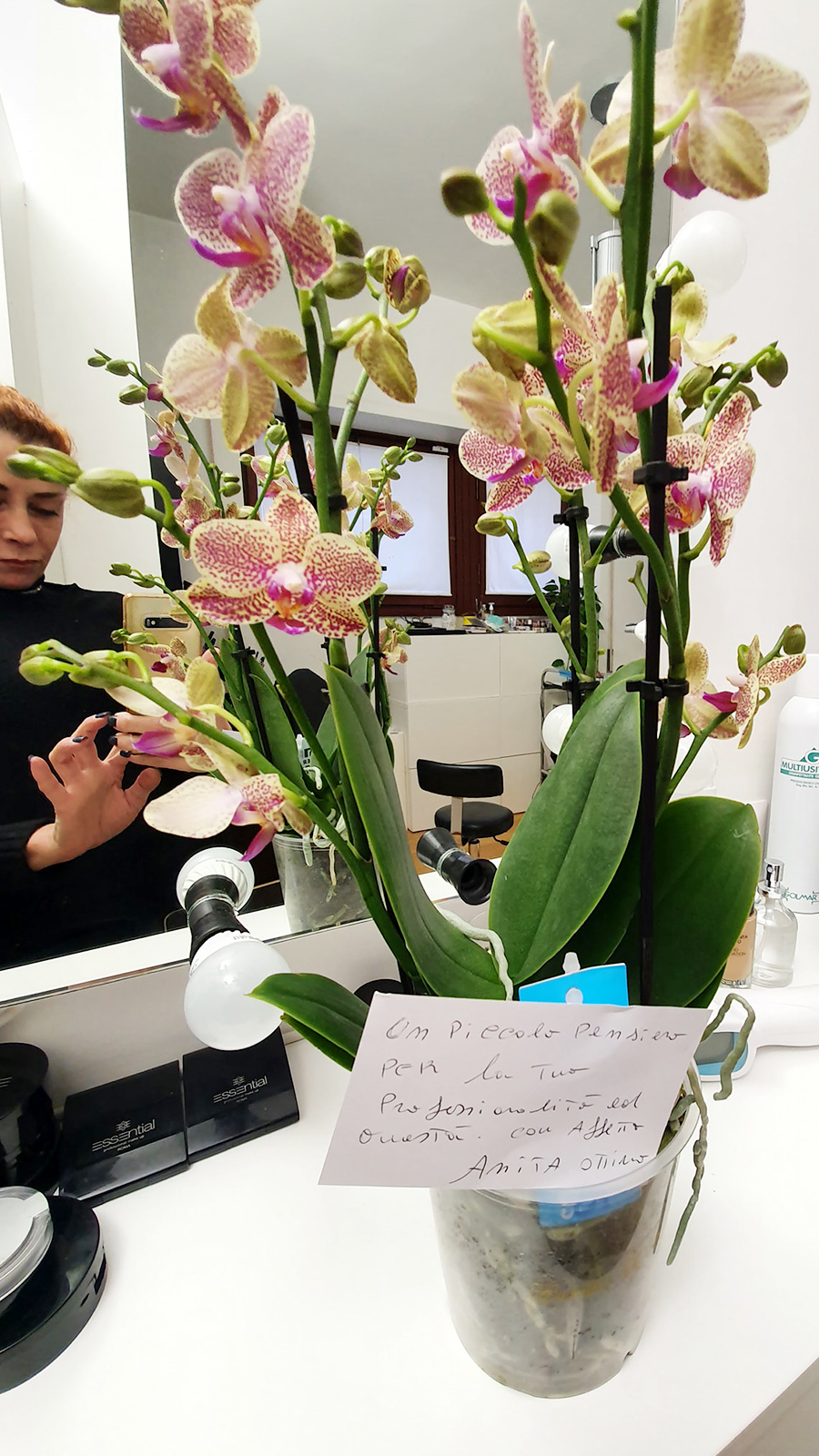L’orchidea che vedete in foto me l’ha mandata la cliente di oggi, Anita.